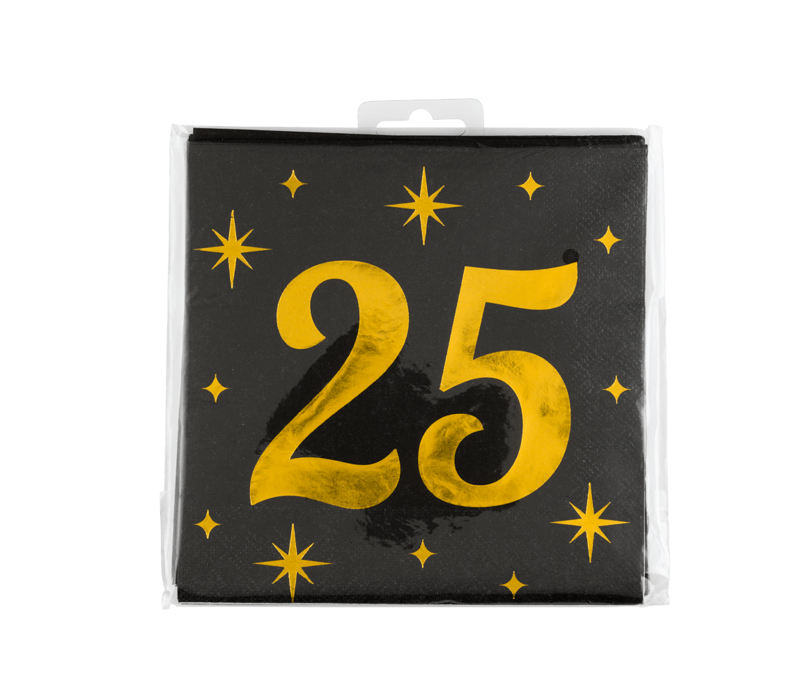 25 vuotta lautasliinat musta kulta 19cm 16kpl