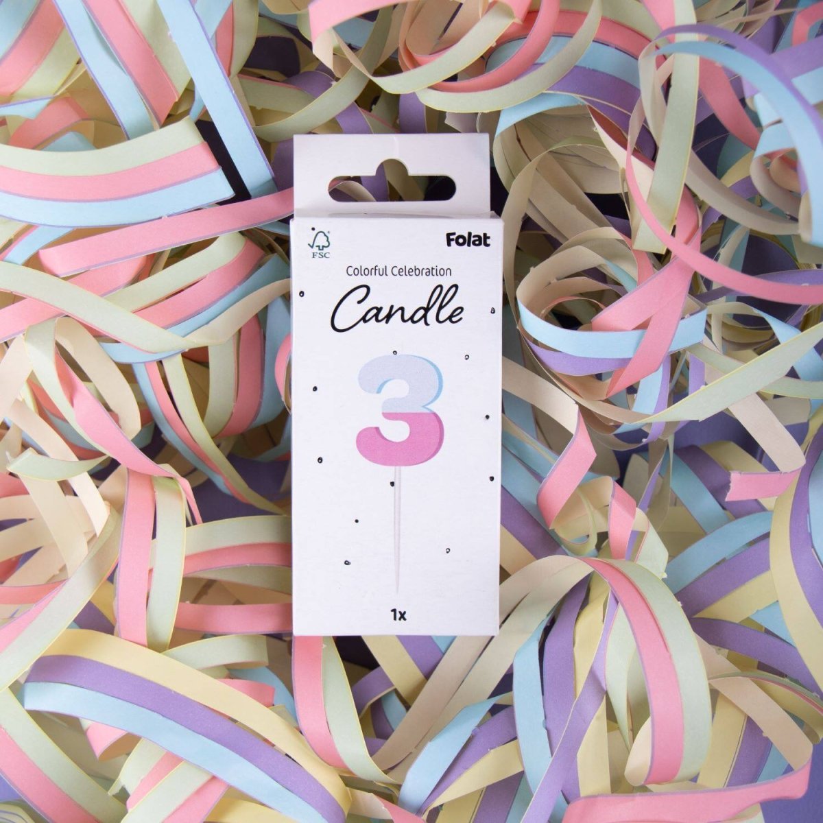 3 vuoden kynttilä Sininen Vaaleanpunainen 9cm