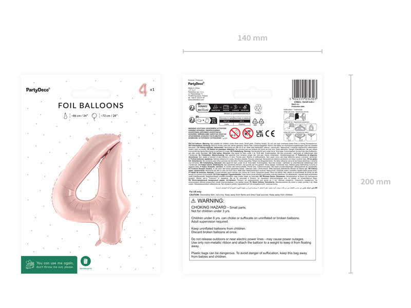 4 vuoden kuva ilmapallo vaaleanpunainen tyhjä 72cm