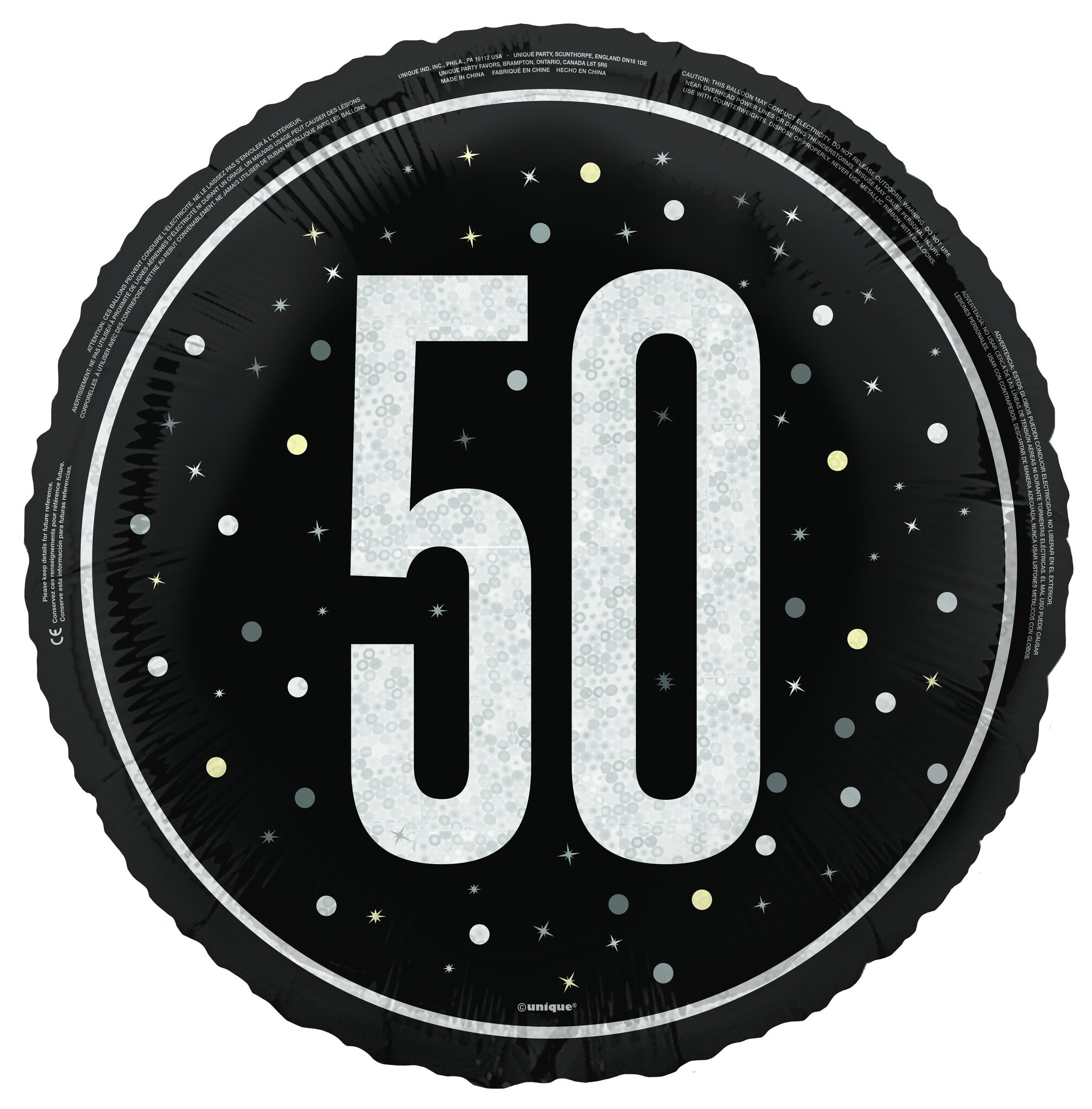 50 vuotta helium ilmapallo musta valkoinen tyhjä 45cm