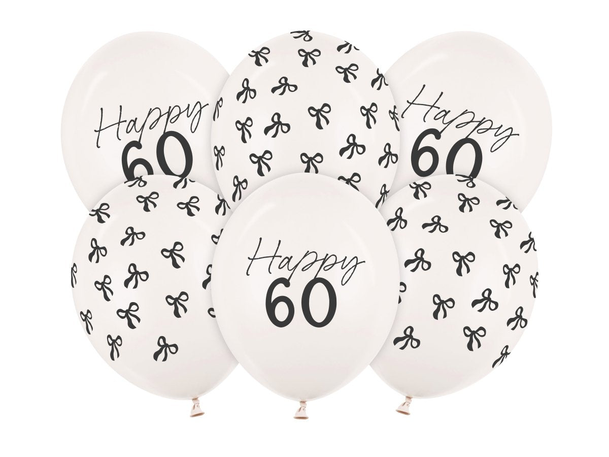 60 vuotta ilmapalloja Musta Valkoinen keula 30cm 6kpl