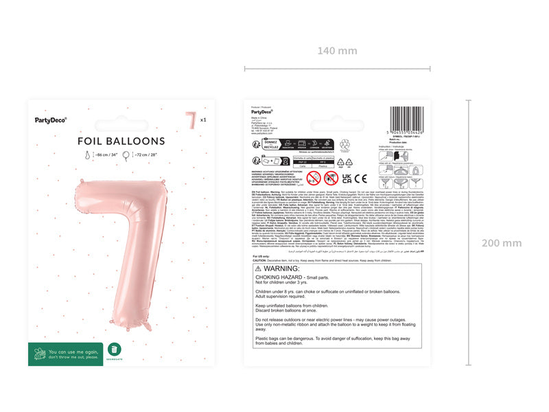 7 vuoden kuva ilmapallo vaaleanpunainen tyhjä 72cm