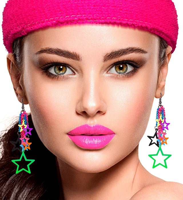 Täydennä retroilmeesi näillä värikkäillä 80-luvun tähdenmuotoisilla korvakoruilla. Täydelliset teemajuhliin, naamiaisiin tai nostalgiseen 80-luvun asuun.