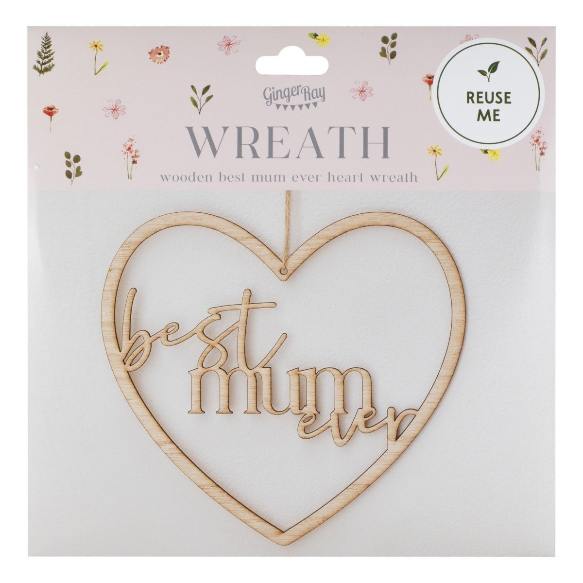 Jokainen pakkaus sisältää 1 x puuseppeleen, jossa on sydämenmuotoinen 'Best Mum Ever', mitat 20,6 cm (K) x 22,3 cm (L).
