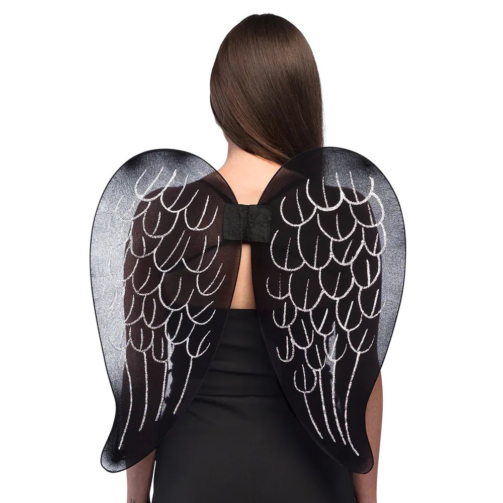 Leikkisät mustat enkelinsiivet, joiden avulla voit koota hauskan asun, jossa on synkkä ripaus Halloweenia varten hetkessä. Tumman enkelin siivet (53 x 54 cm) on helppo pukea kuminauhojen avulla. Täydellinen asuste Halloween-juhliin langenneena enkelinä.