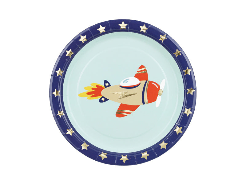 Paperilautaset Lentokone, värisekoitus, koko n. 18 x 18 cm. (1 pkt/6 kpl)