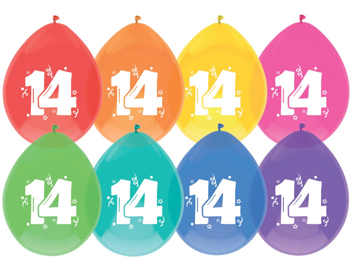 Ilmapallot 14 vuotta värilliset 30cm 8kpl