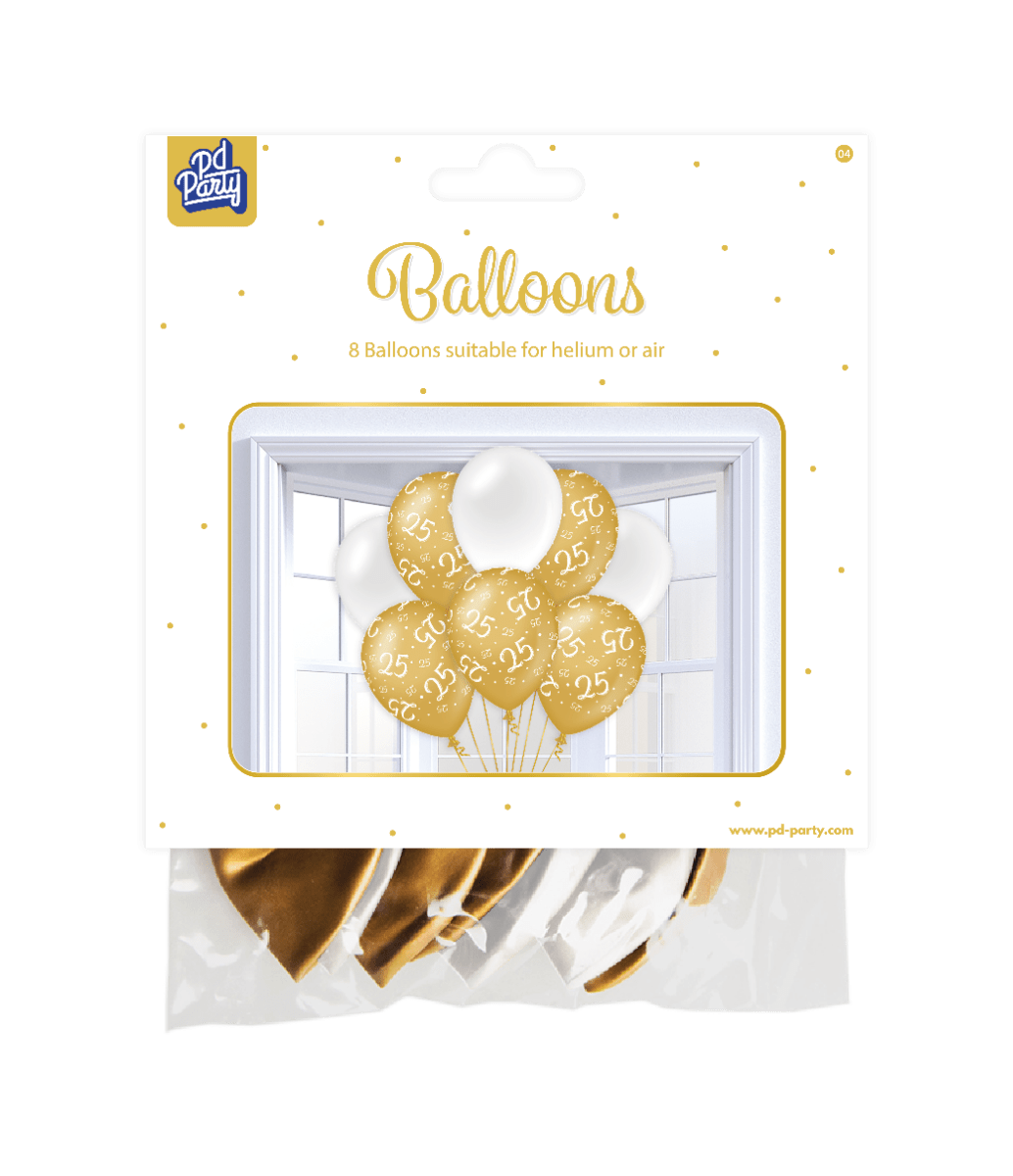 Ilmapallot 25 vuotta kultainen valkoinen 30cm 8kpl
