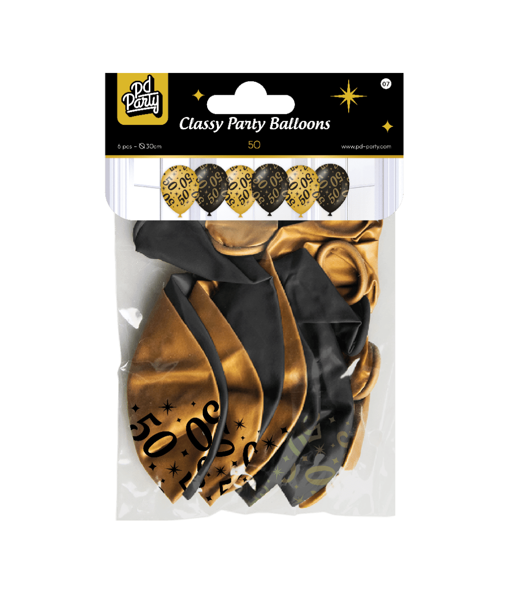 Ilmapallot 50 vuotta kultainen musta 30cm 6kpl