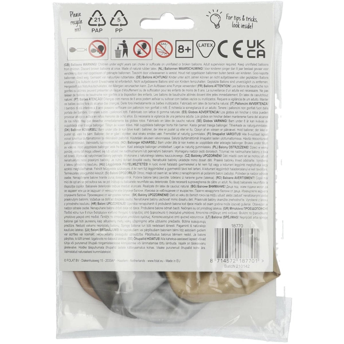 Pallot hohtavat '70 vuotta! Electrum 33cm - 4 kpl. Sisältö: 4 lateksipalloa. Väri: monivärinen. Käytettäväksi esimerkiksi seuraavissa juhlissa/juhlatilaisuuksissa: Syntymäpäivä ja vuosipäivä. Jokainen ilmapallo on kooltaan 13 tuumaa/33 cm. Tuote on valmistettu lateksista.