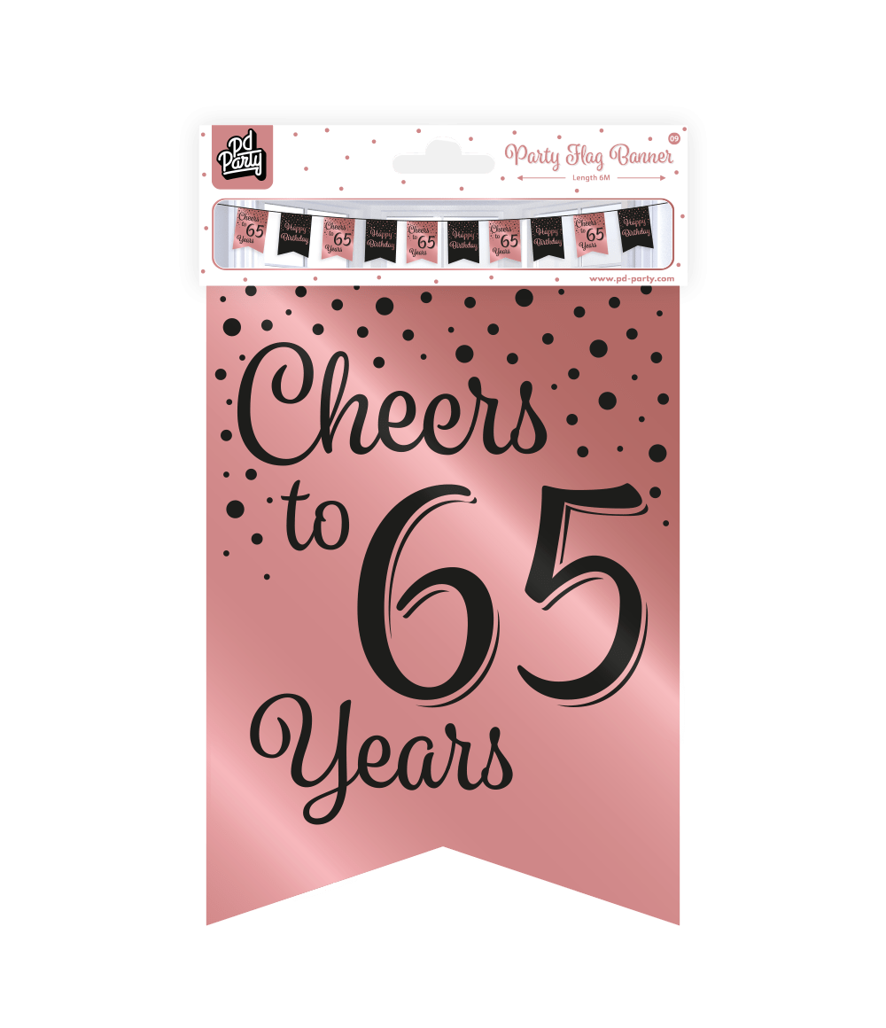Banner 65 vuotta vaaleanpunainen musta 6m