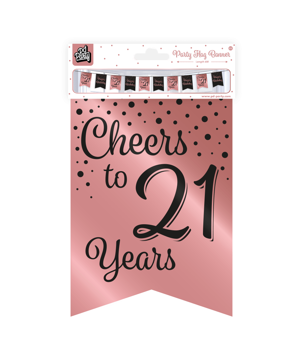 Banner 21 vuotta vaaleanpunainen musta 6m