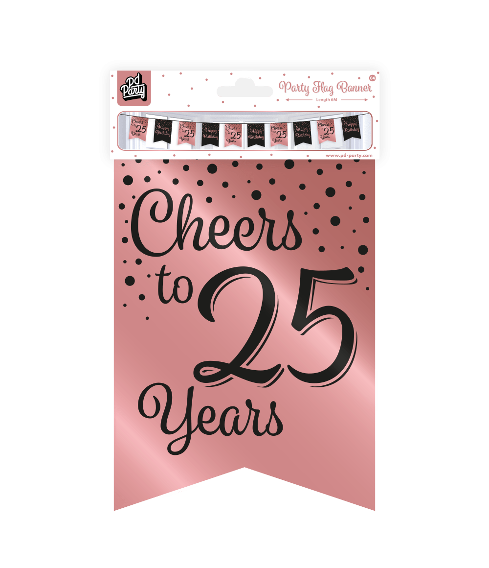 Banner 25 vuotta vaaleanpunainen musta 6m