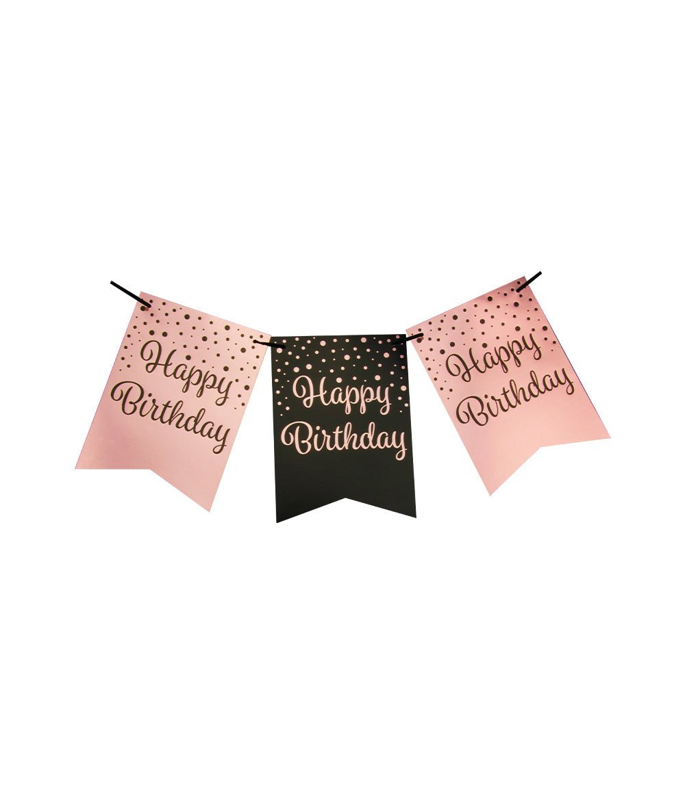 Banderolli Hyvää syntymäpäivää vaaleanpunainen musta 6m