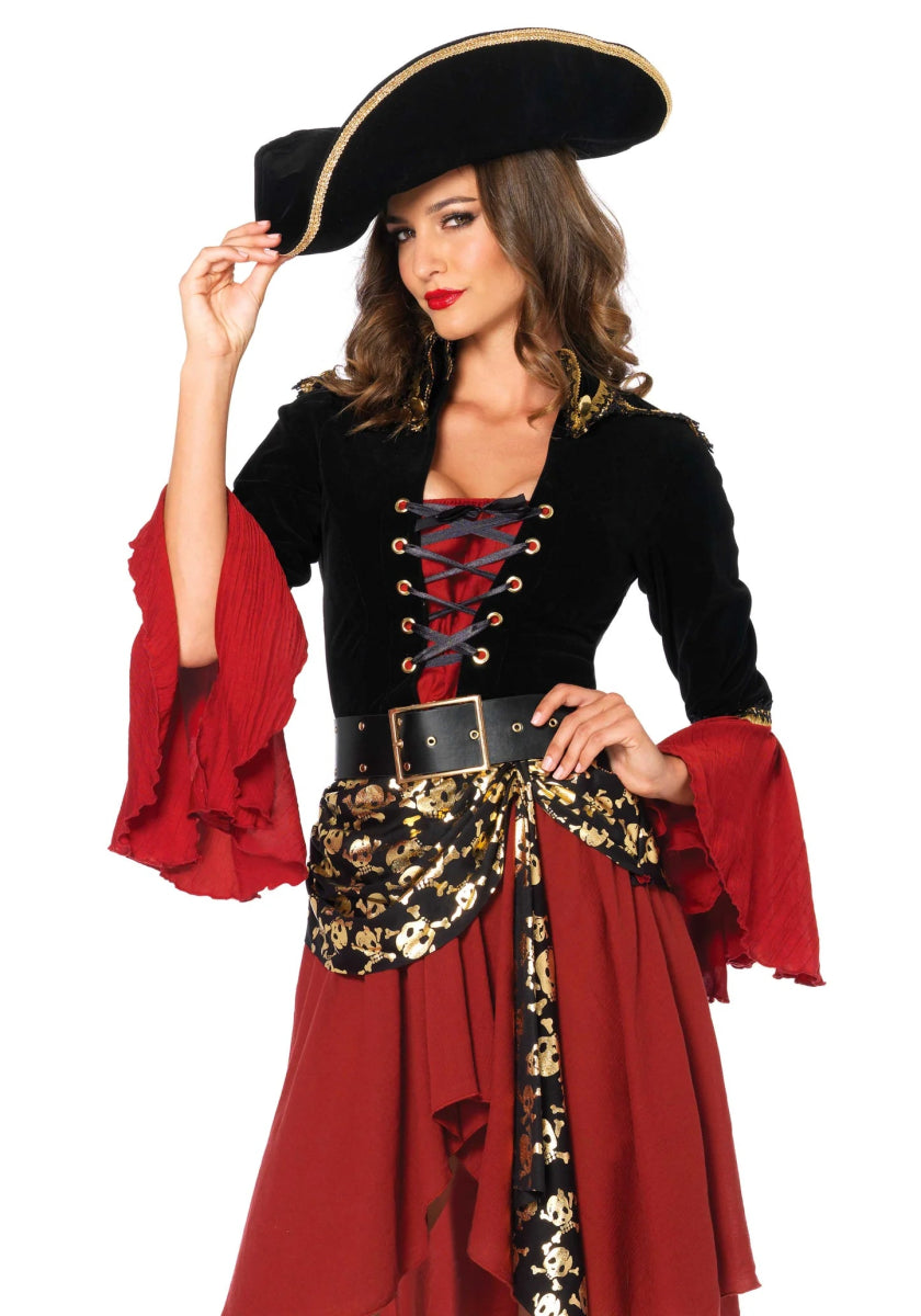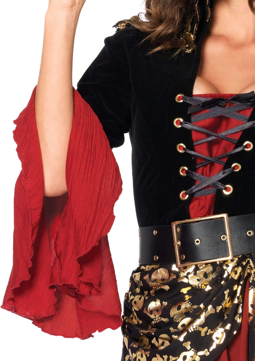 Säädä seikkailun ja auktoriteetin sävy 2-osaisella Cruel Seas Captain -asulla Leg Avenuelta! Tämä setti sisältää istuvan mekon, jossa on erittäin pitkä selkäosa, ja mekkoon kiinnitetyn ylellisen samettitakin. Sopiva vyö viimeistelee merirosvomaisen lookin, joka tekee sinusta kauneimman ja rohkeimman kapteenin missä tahansa juhlassa tai tapahtumassa! 🏴☠️✨