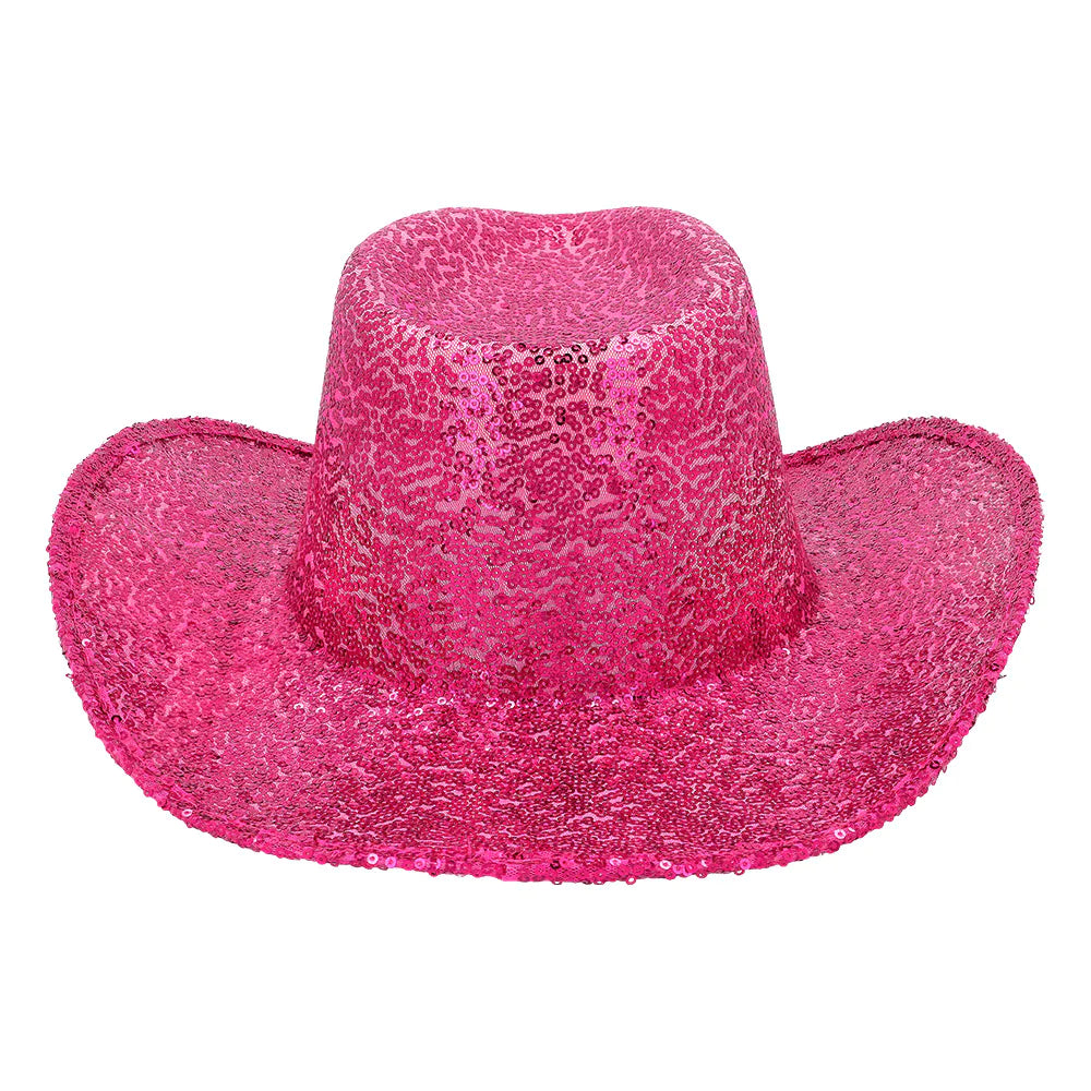 Silmiinpistävä vaaleanpunainen cowboy-hattu paljeteilla, joka on siisti ja lumoava lisä lännenpukuun karnevaaleilla tai naamiaisjuhlissa. Myös mahtavana hattuna festivaaleille tämä ainutlaatuinen Rodeo Party cowboy-hattu on ehdoton ja voi täydentää asun polttareihin!