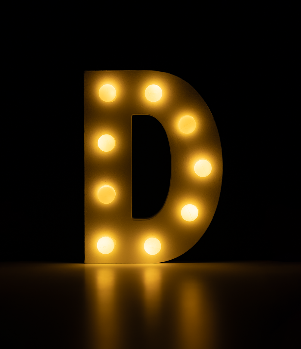 Valokirjainten avulla voit luoda omia sanoja ja lauseita tunnelmallisella tavalla. Mukana paristo.