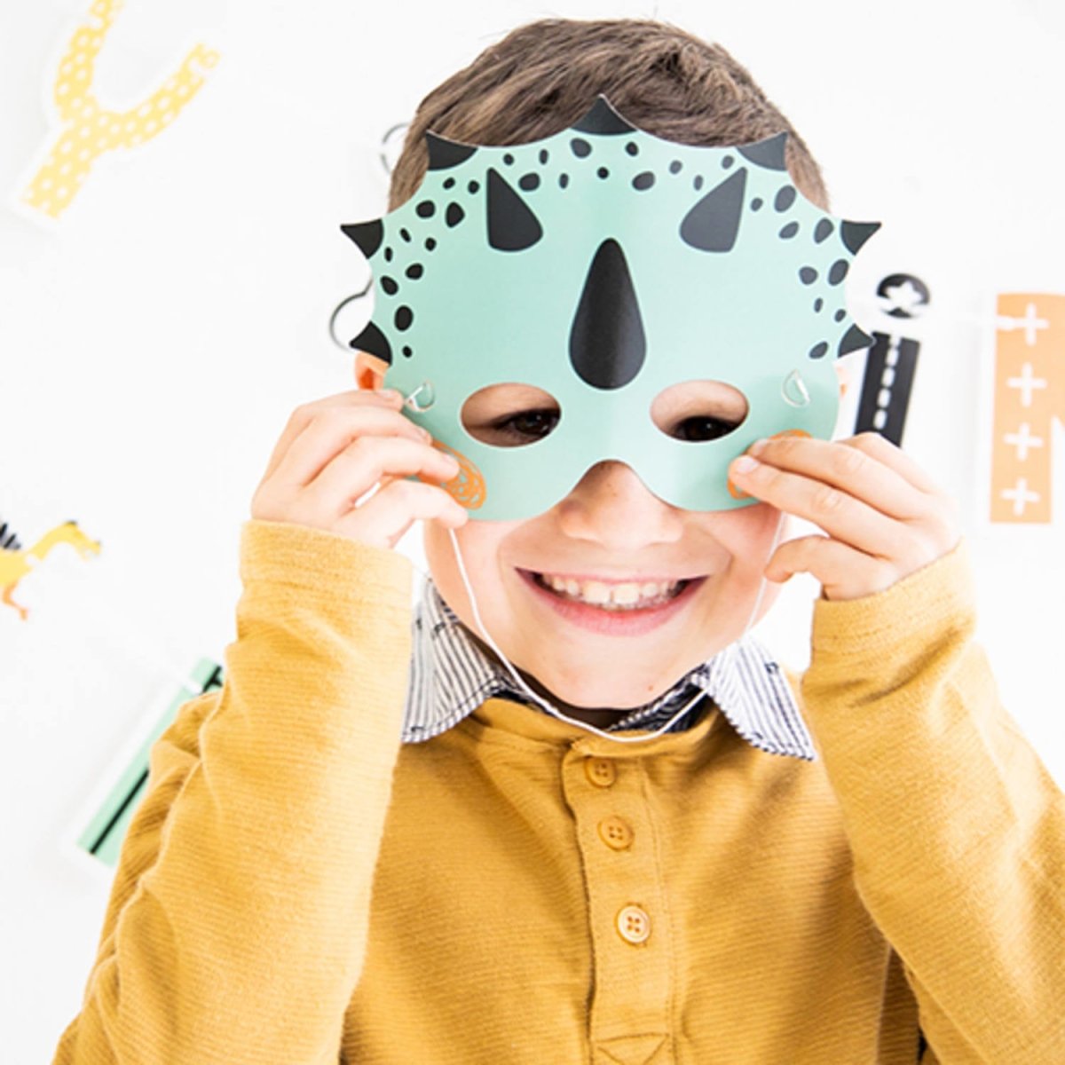 Maskit Dino Roars - 6 kpl. Sisältö: 6 naamiota. Väri: Monivärinen. Käytettäväksi esimerkiksi seuraavissa juhlissa/juhlatilaisuuksissa: Lastenjuhlat. Naamarit ovat kooltaan n. 18x14cm ja ne on painettu yhdelle puolelle. Jokaisessa naamiossa on kuminauha. Tuote on valmistettu paperista.