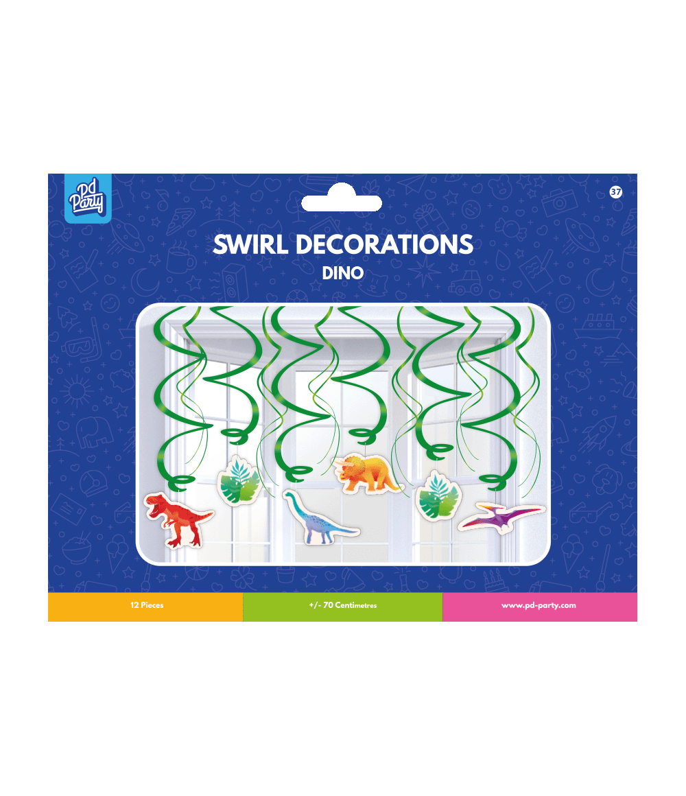 Lasten juhlat eivät voi olla ilman näitä Dino-pyörrekoristeita, ja ne muodostavat ainutlaatuisen yhdistelmän muiden Dino-juhlakoristeidemme kanssa!