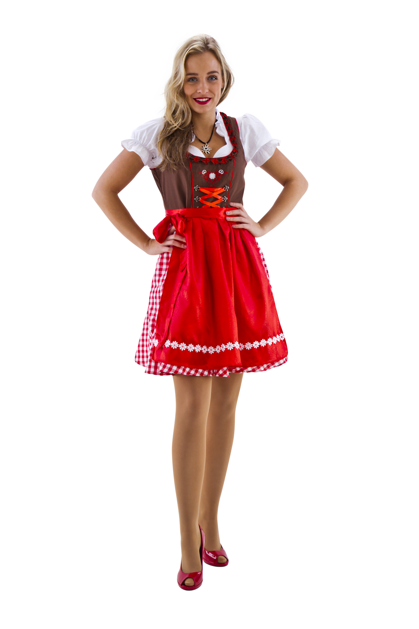 Dirndl ruskea-punainen/valkoinen ruutukuvioinen