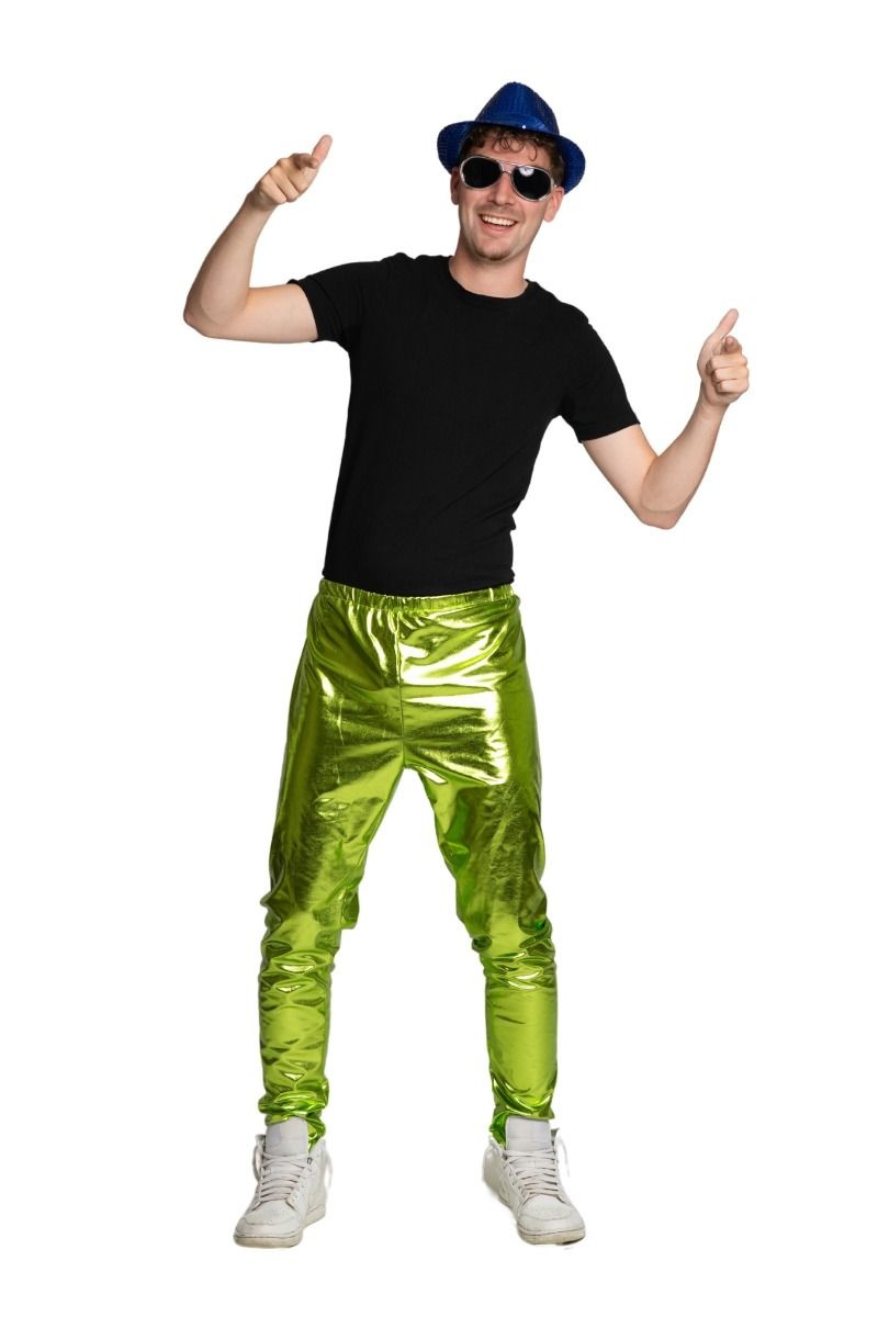 Nämä vihreät metalliset diskohousut ovat todellinen katseenvangitsija, ja ne sopivat täydellisesti juhliin, karnevaaleihin ja teemailtoihin. Sopii sekä miehille että naisille ja on ihanteellinen täydentämään huomiota herättävän discoasun.