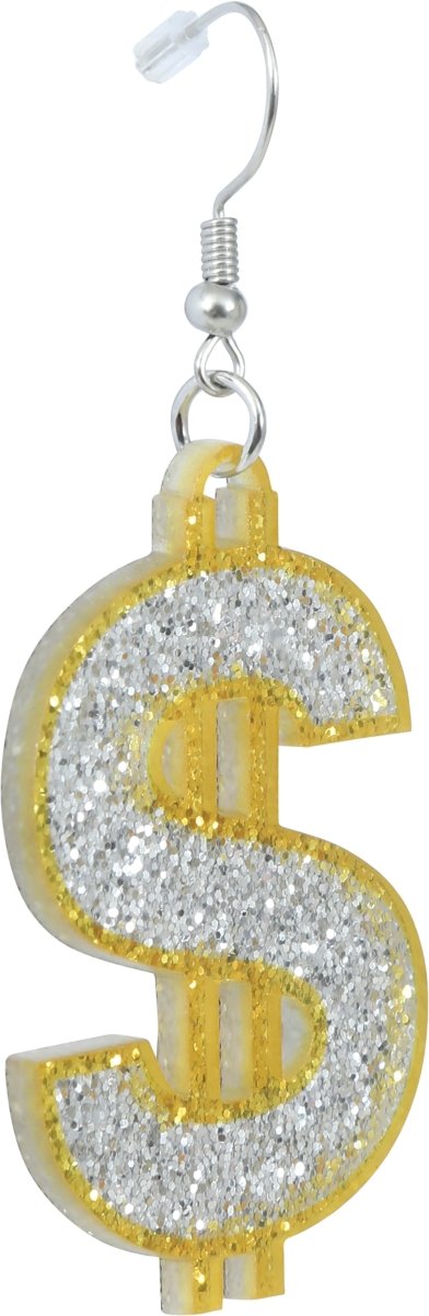 Lisää asuusi ripaus hauskuutta ja glamouria näillä silmäänpistävillä dollarikorvakoruilla. Ihanteelliset naamiaisjuhliin, karnevaaleille, festivaaleille tai vain silloin, kun haluat silmiinpistävän yksityiskohdan.