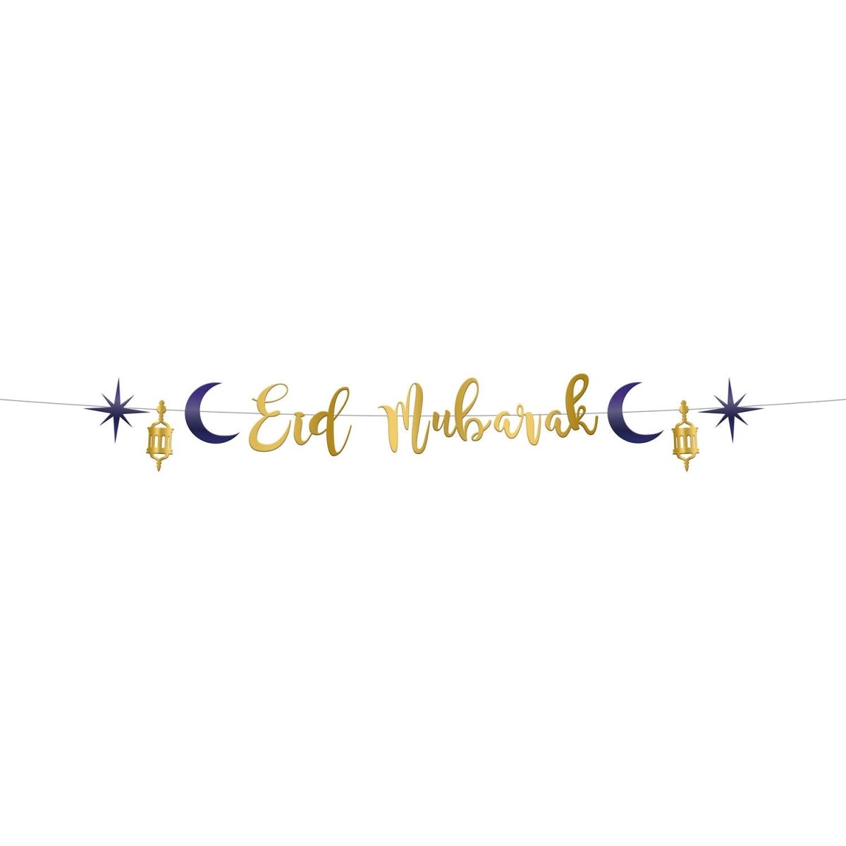 Toivotamme toisillemme siunattua juhlaa. Kirjekoriste 'Eid Mubarak', 1,5 metriä. Sisältö: 1 kirjekoriste. Käytetään esimerkiksi seuraavissa juhlissa/juhlissa: Eid Mubarak. Kirjekoru, jossa on toivotus "Eid Mubarak", jota ympäröivät kuu, öljylamppu ja tähti. Kirjaimet ja hahmot on valmistettu paperista ja laminoitu toiselta puolelta foliolla. Seppele on valmistettu muovista. Tämä tuote on valmistettu paperista ja muovista.