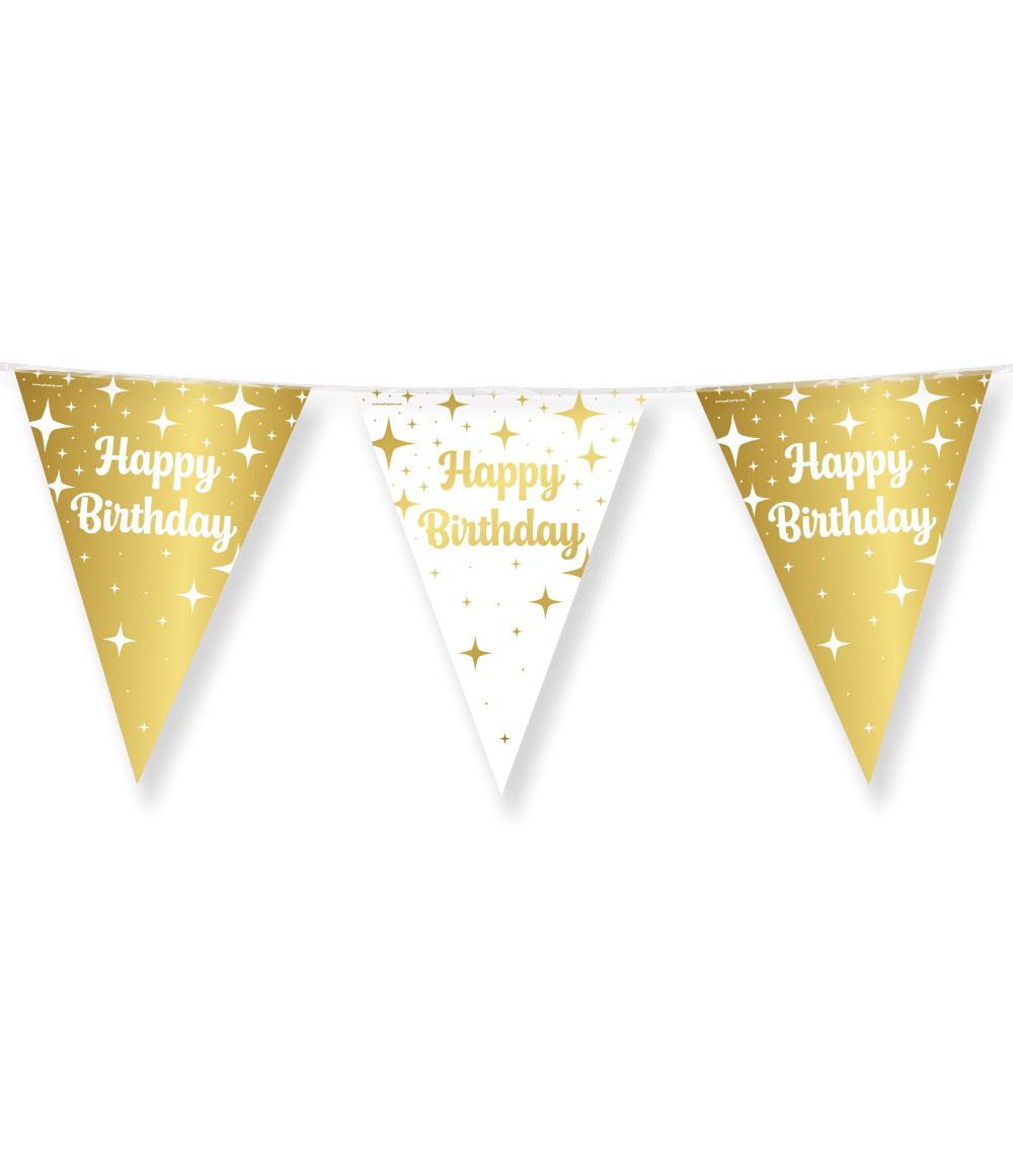 Fancy Party Flags folio - Happy birthday voidaan yhdistää täydellisesti yhteensopivien ilmapallojemme sekä muiden laajan valikoimamme juhlatarvikkeiden kanssa, joten voit luoda vaivattomasti juhlavan ja tyylikkään tunnelman.