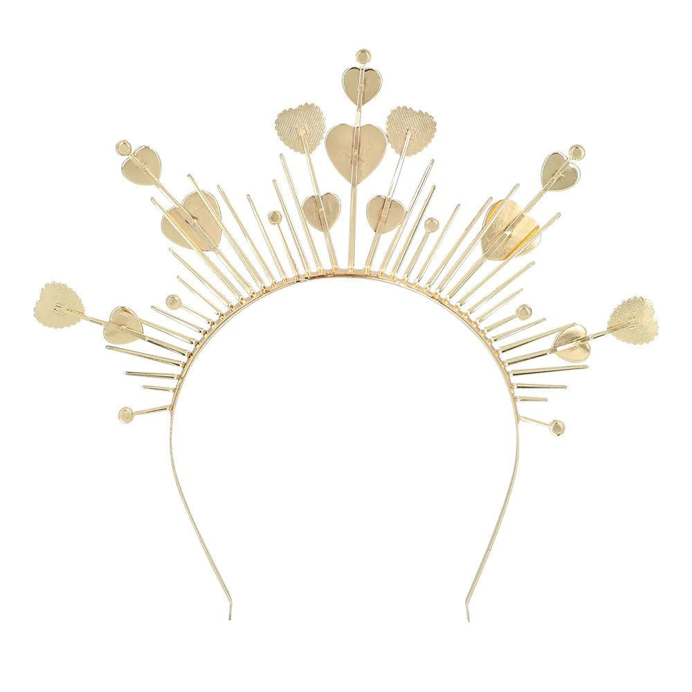 Tämä metallinen halo-kruunu on ainutlaatuinen tiara, joka on koristeltu punaisilla sydämillä ja vie festivaali- tai hääasun seuraavalle tasolle. Lisäksi tämä kaunis halokruunu-diademi on myös ainutlaatuinen asuste täydentämään jumalatar- tai amoripukua karnevaaleille tai cosplay-tapahtumaan.
