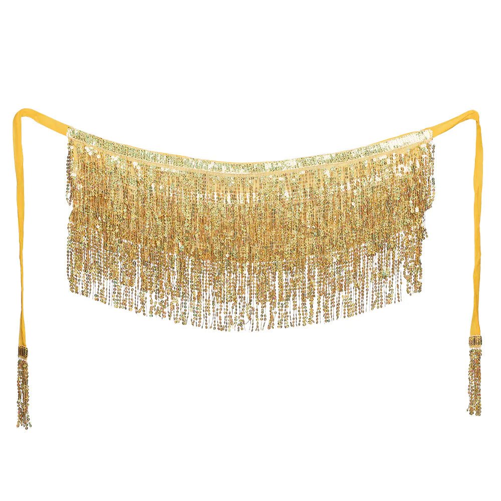Tämä hapsuilla koristeltu kultainen vyö huokuu puhdasta glamouria. Voit luoda hetkessä näyttävän festivaalilookin, jolla on kiistaton wow-tekijä. Mutta tämä vyö sopii mainiosti myös 1001 yön teemabileisiin tai kun aiot juhlia karnevaaleja kuin todellinen vatsatanssija.