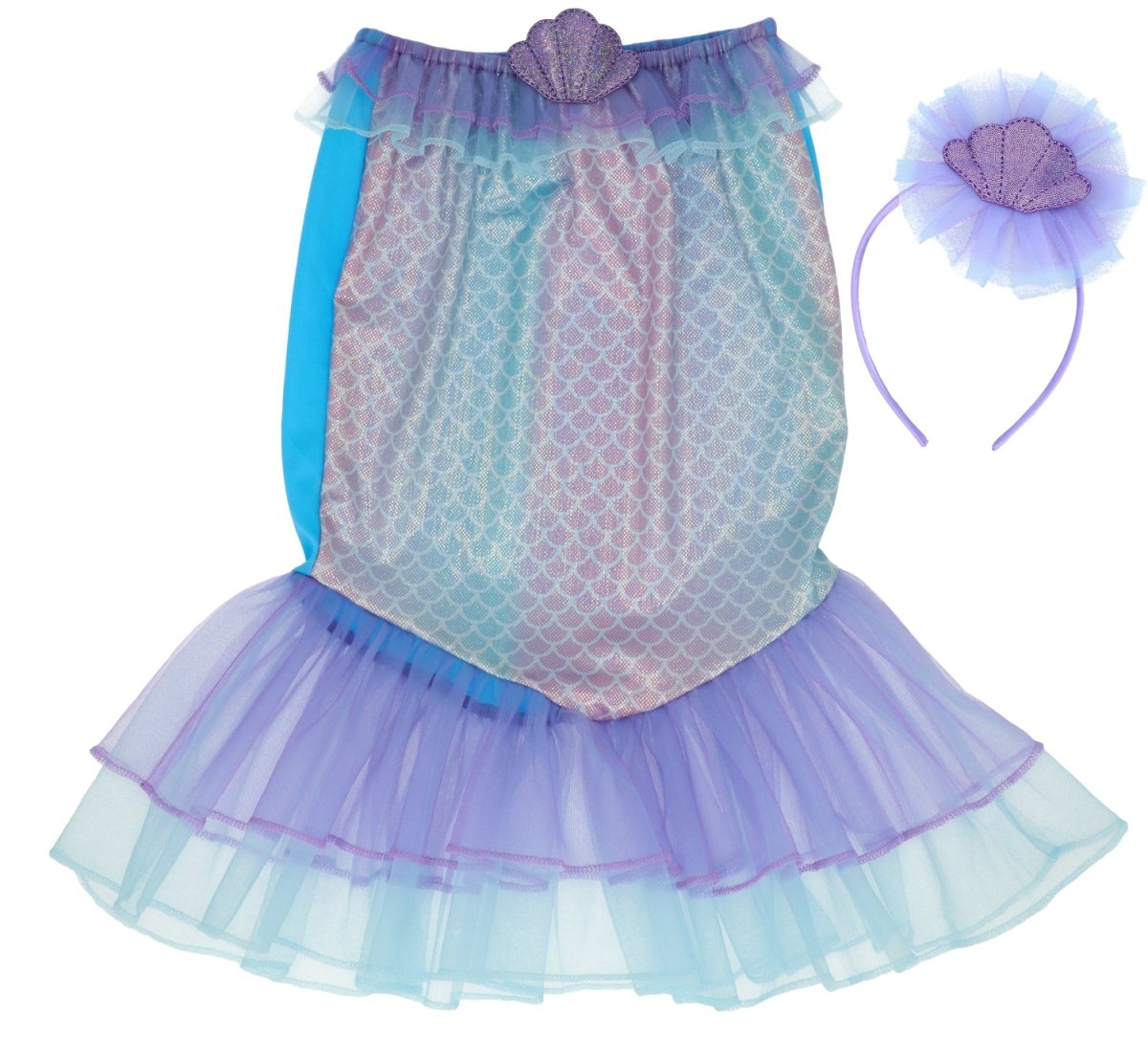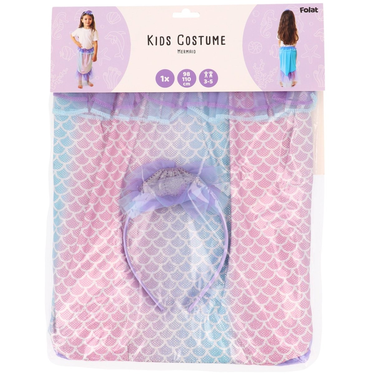 Katso, merenneito! Tämä Merenneito-pukusetti muuttaa jokaisen lapsen lumoavaksi vedenalaiseksi olennoksi. Täydellinen lastenjuhliin, naamiaisiin ja karnevaaleihin. Setti sisältää upean merenneidon hameen ja siihen sopivan diademin, jossa on runsaasti kiiltoa ja väriä.