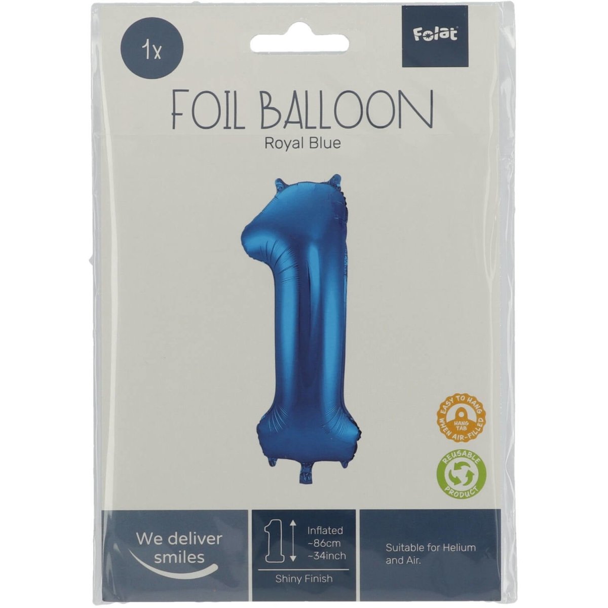 Folio ilmapallo kuva 1 sininen metallinen XL 86cm tyhjä