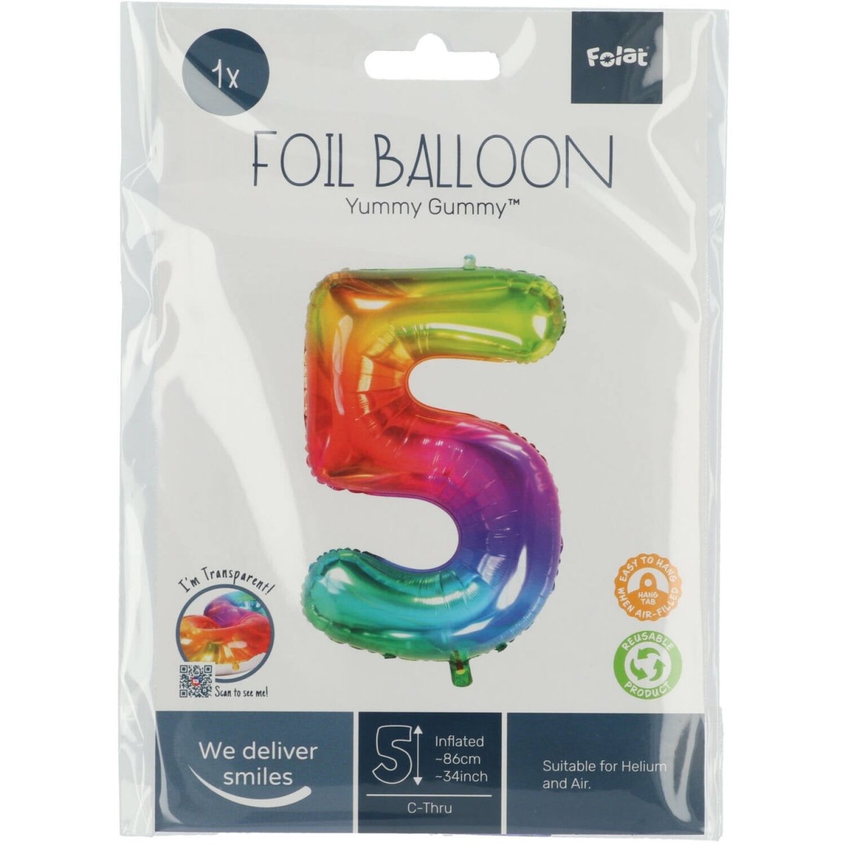 Foliopallo Nami Gummy Rainbow Figure 5 - 81 cm. Sisältö: 1 foliopallo. Väri: Monivärinen. Etupuoli on läpinäkyvä ja takapuoli hopeanvärinen. Käytetään esimerkiksi seuraavissa juhlissa/juhlatilaisuuksissa: Syntymäpäivä, lastenjuhla ja vuosipäivä. Tämän foliopallon koko on 32 tuumaa/81 cm. Tuote on valmistettu foliosta.