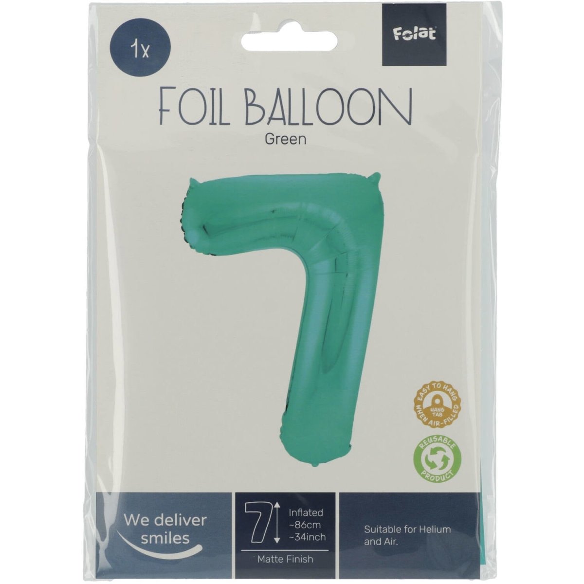 Kaunis iso foliopallo numerosta 7 metallisella mattaisella vihreällä värillä. Sisältö: 1 foliopallo, jonka pituus on 86 cm. Väri: vihreä. Ilmapallossa on kätevät ripustuslenkit, joten se on helppo ripustaa. Käytettävissä esimerkiksi seuraavissa juhlissa/juhlatilaisuuksissa: Syntymäpäivä, lastenjuhlat ja vuosipäivä. Tämän foliopallon koko on 34 tuumaa/86 cm. Tuote on valmistettu foliosta.