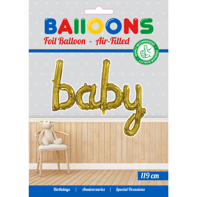 Pakkauksen sisältö:Foliopallo Baby Gold 42cm tyhjä