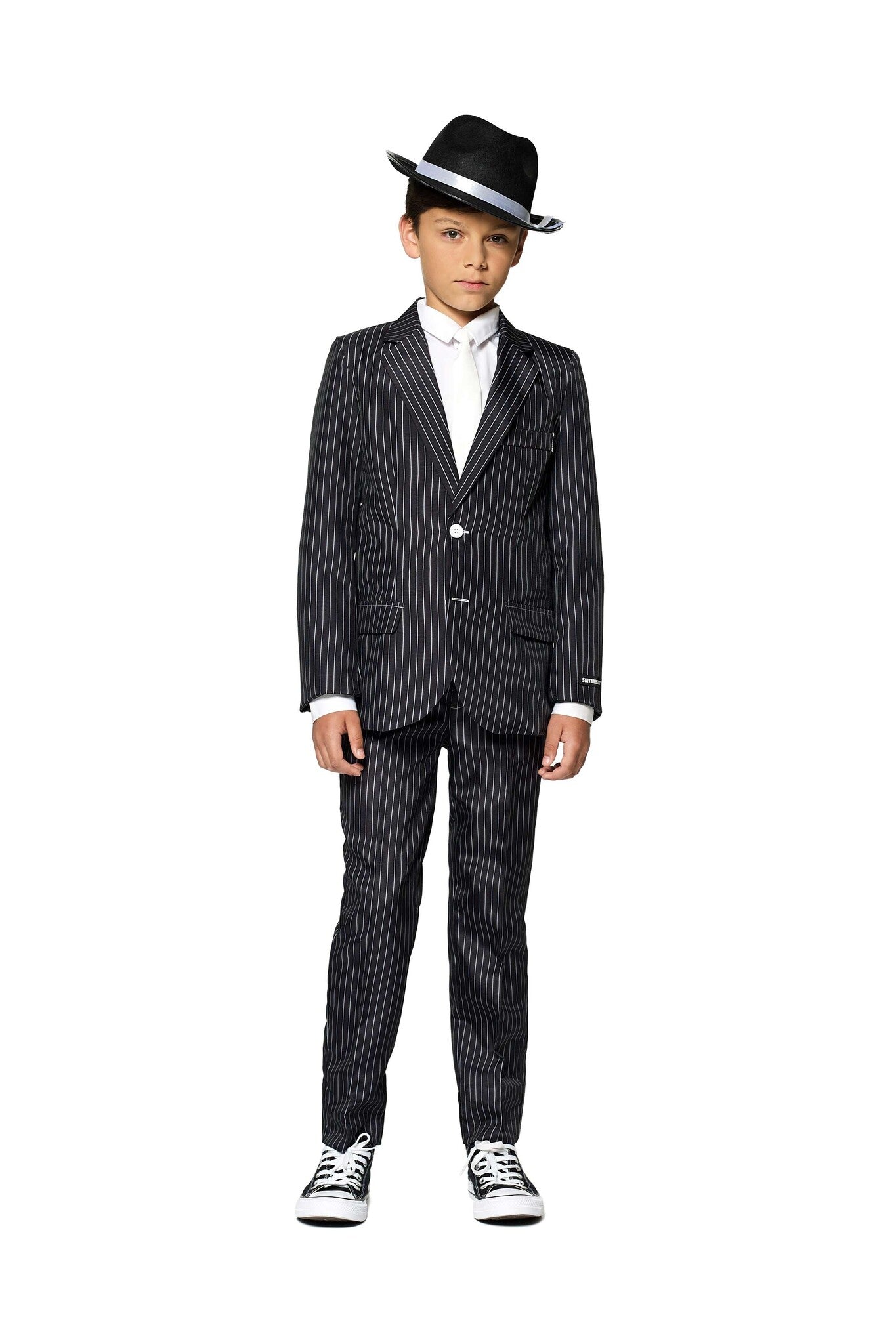 Gangsteri Pinstripe musta puku Boy Suitmeister