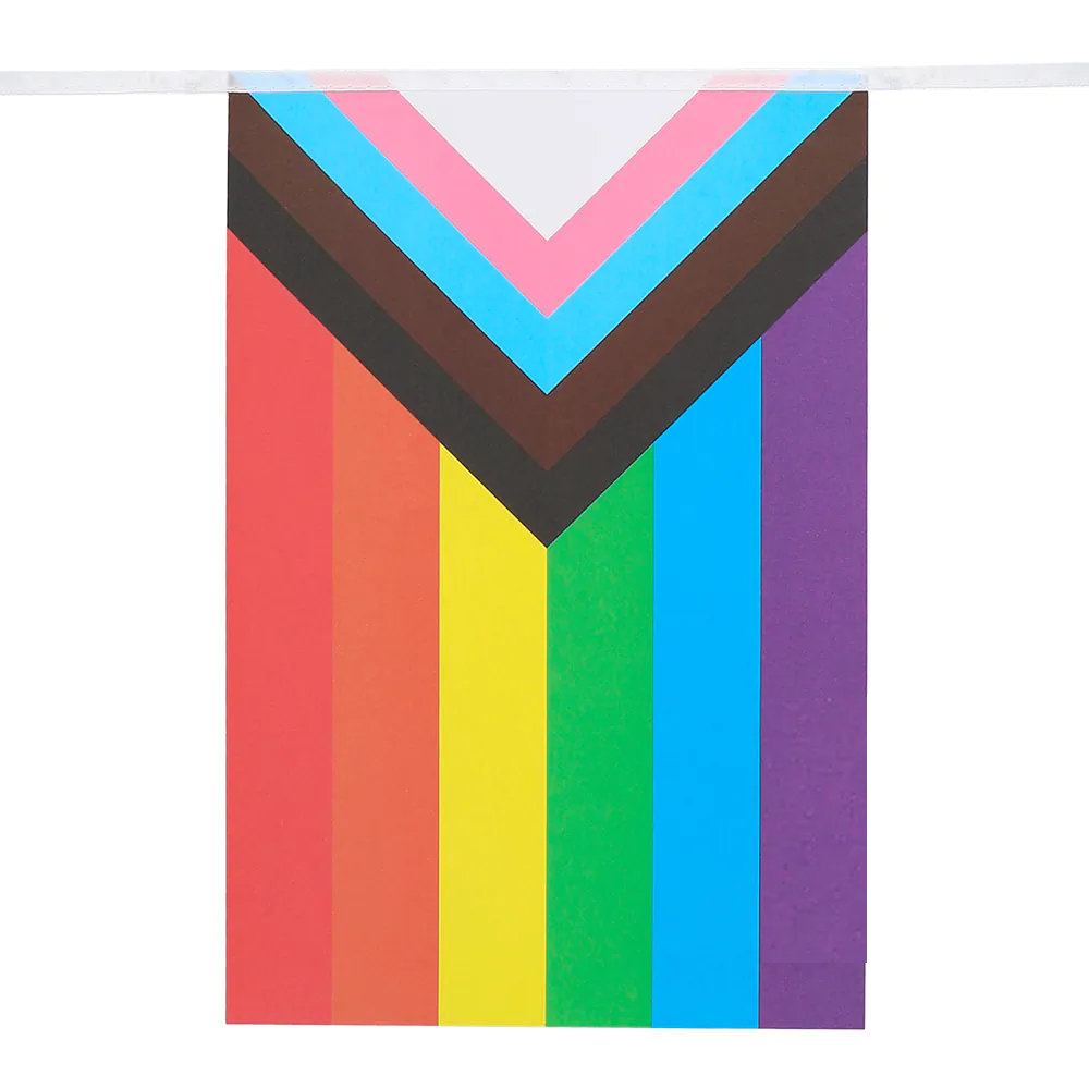 Priden aikana sateenkaarilippu ei ole ainoa asia, joka nousee enemmän esille. Myös Progress-lippu nousee yhä enemmän esiin. Siksi tämä värikäs paperinen lippusiima (6 metriä), jossa on Progress-lippua muistuttavia suorakaiteen muotoisia lippuja, sopii erinomaisesti Pride-juhlan koristeeksi.