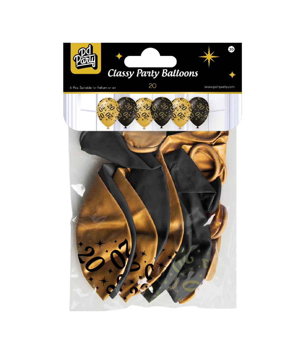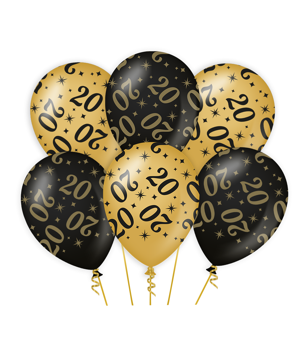 Kultainen musta ilmapallot 20 vuotta 30cm 6kpl