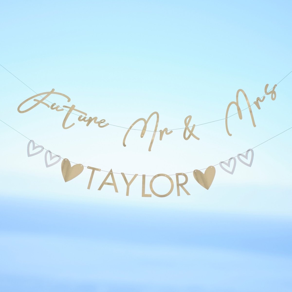 Tyylikäs ja trendikäs, tämä kultainen personoitu lippusiima tekee kihlajaisjuhlistasi erityiset sinulle ja morsiamellesi, ja kaikki vieraasi tulevat rakastamaan sitä.