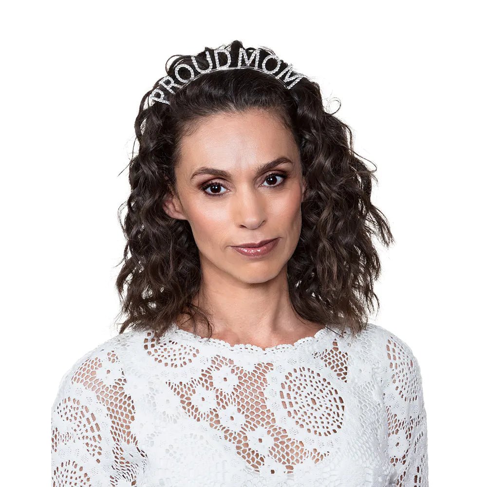 Täydellinen vauvakutsutarvike: Toivota tuleva äiti tervetulleeksi tällä lumoavalla metallisella tiaralla, jossa on teksti ""Proud Mom""! Tiara on täydellinen asuste, joka saa tulevan äidin loistamaan tänä erityisenä päivänä. Se sopii tietysti myös loistavaksi lahjaksi äitienpäiväksi.