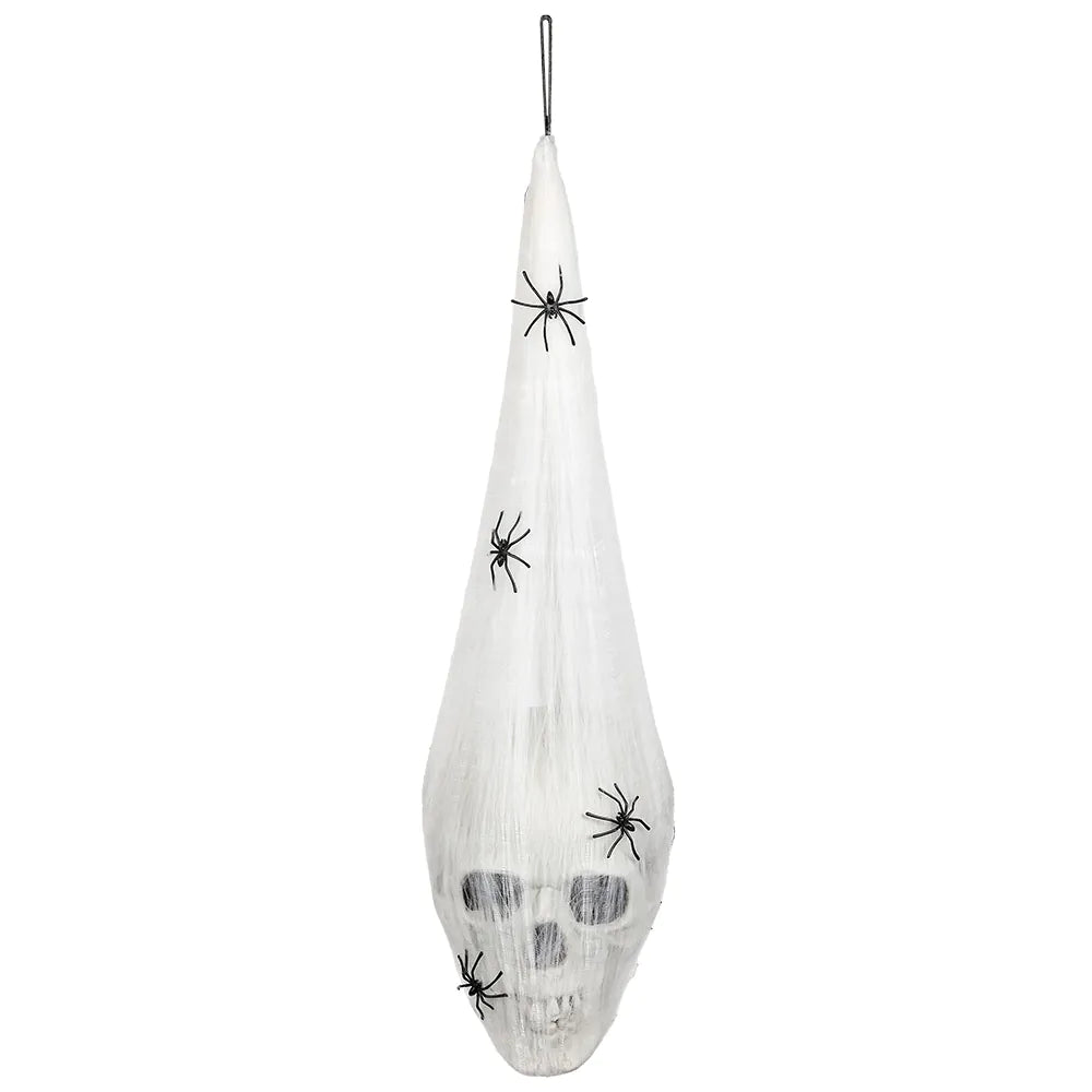 Halloweenina saa olla pelottava ja karmea, joten ripusta tämä räikeä koriste, jossa on hehkuvilla silmillä varustettu ja hämähäkinseitteihin kääritty pääkallo, ja säikäytä kaikki. Koristeessa on kätevä silmukka helppoa ripustamista varten. Täydellinen koriste halloween-juhliin.