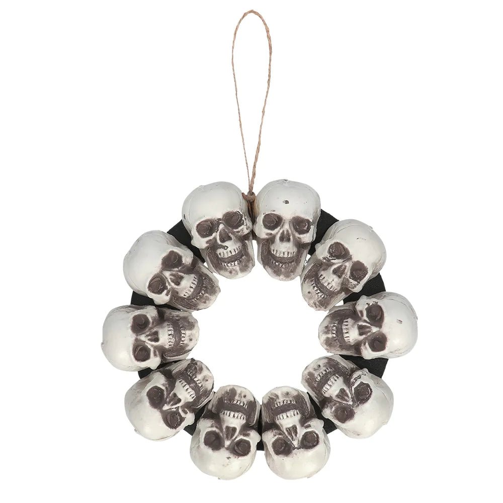 Anna halloween-koristeillesi karmiva ilme tällä 35 cm:n pituisella pääkalloseppeleellä. Ripusta seppele oveen, niin saat jännittävän vastaanoton, joka sopii täydellisesti Halloween-teemaan.