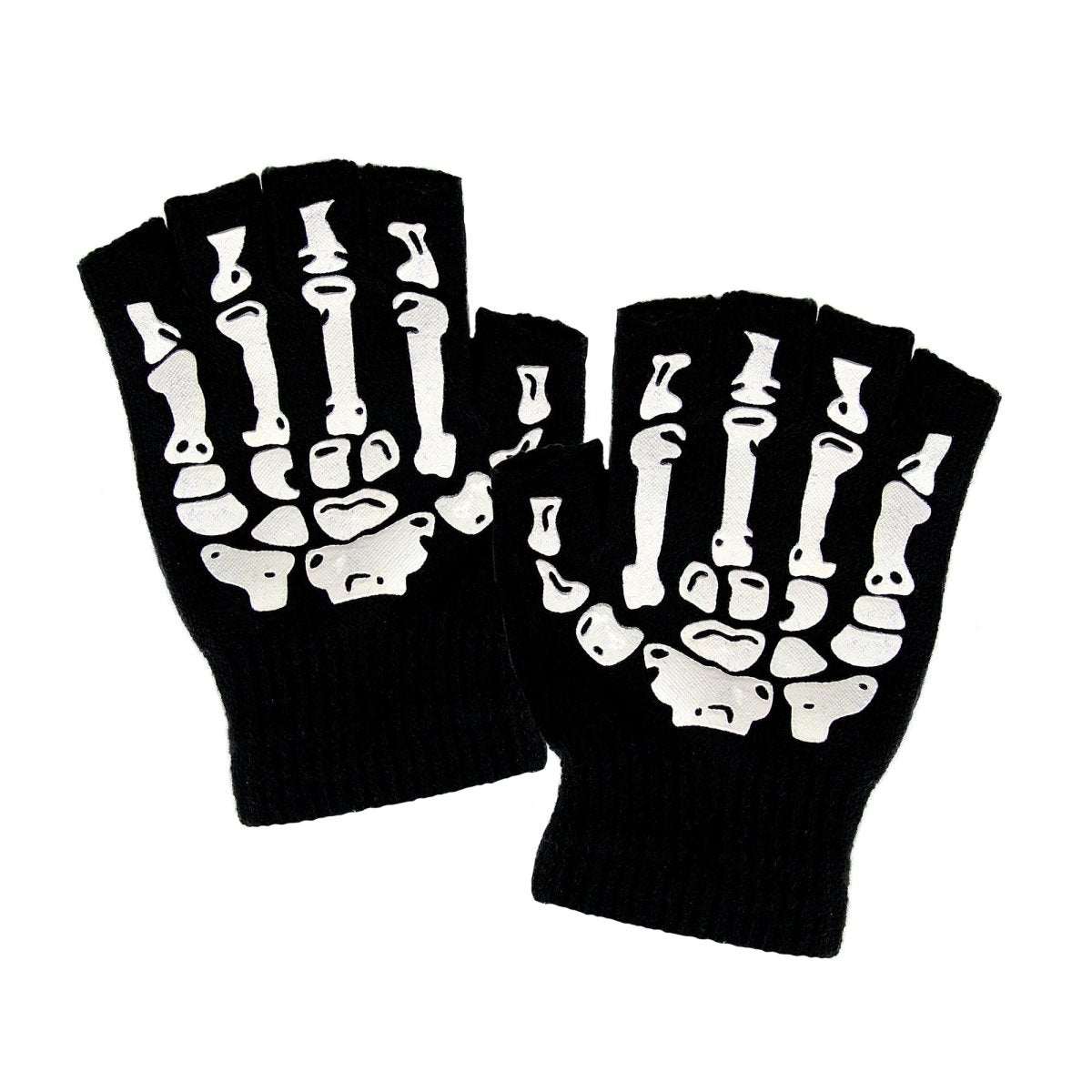 Halloween käsineet Musta Valkoinen luuranko sormeton sormeton