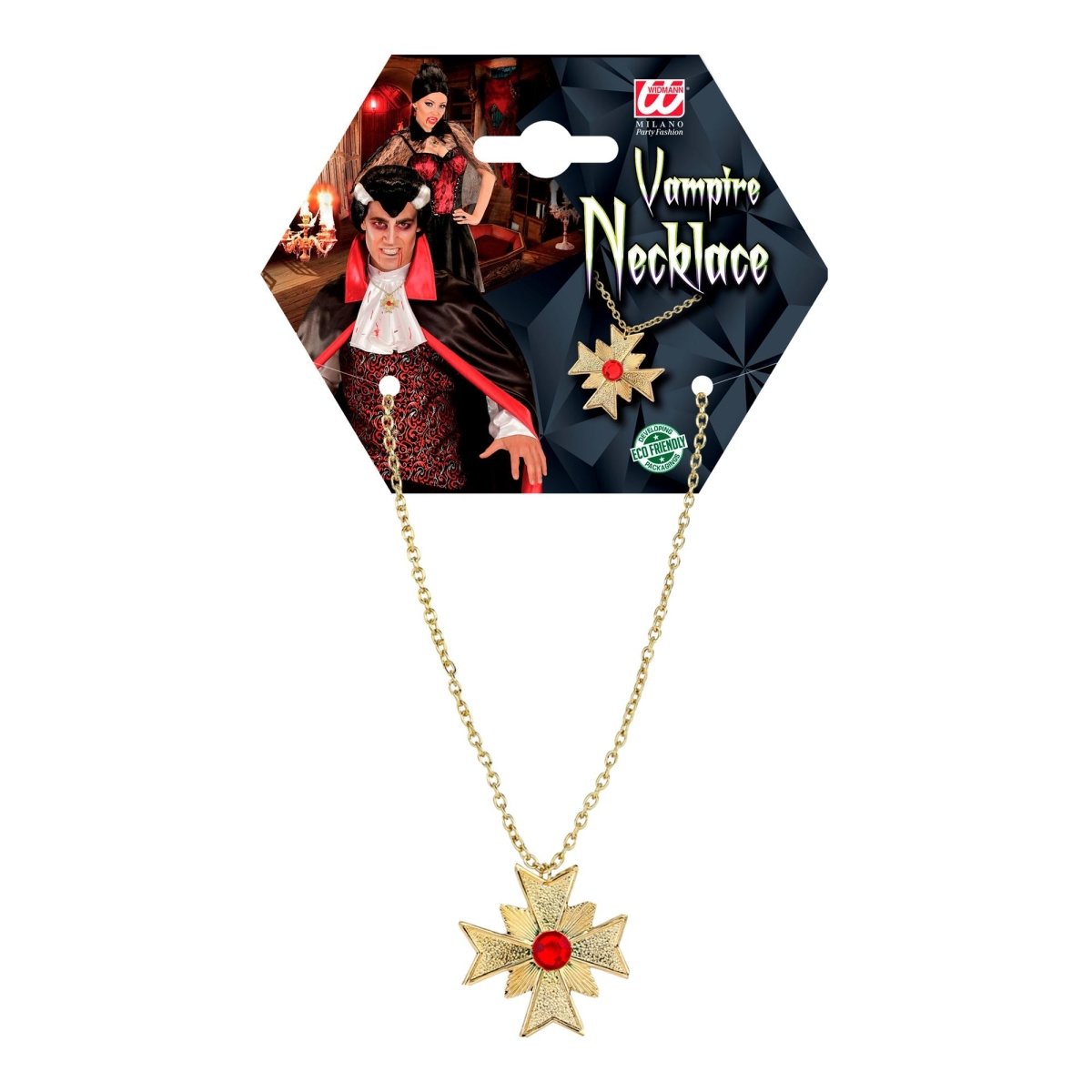 Halloween kaulakoru kulta punainen jalokivi