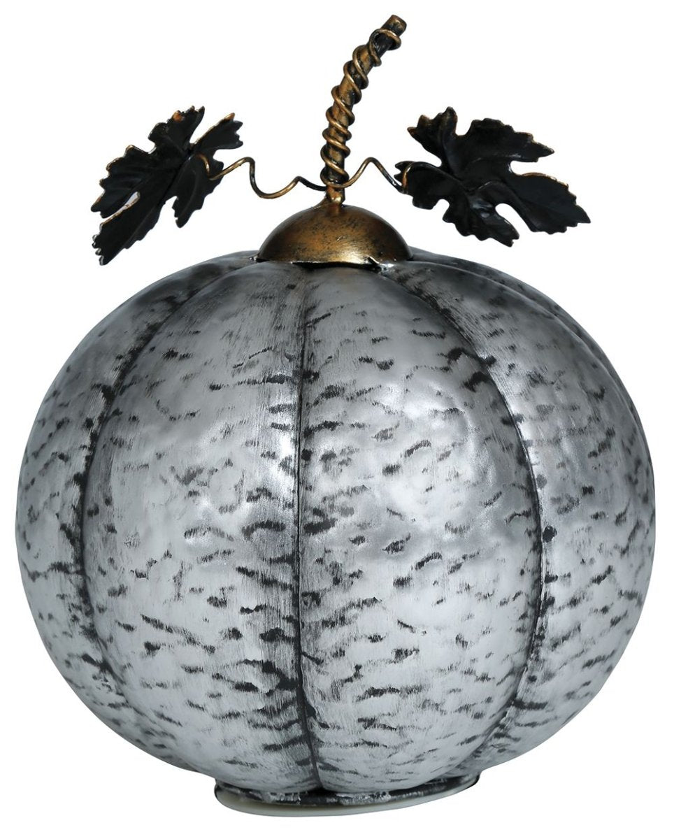 Halloween koriste hopeinen kurpitsa valolla 16cm
