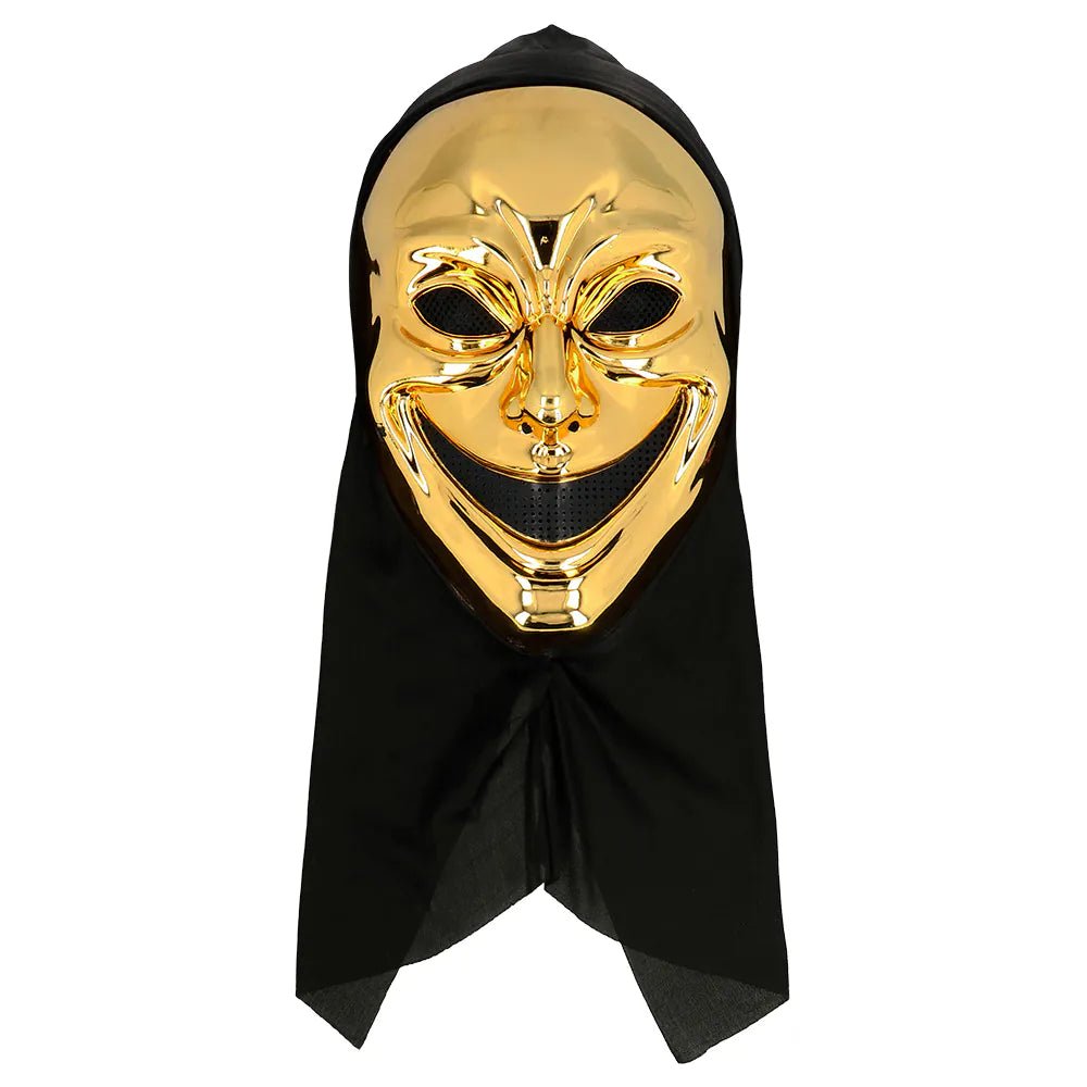 Pukeudutko psykopaattimurhaajaksi halloweenina? Sitten tarvitset ehdottomasti tämän pelottavan, kultaisen Halloween-naamion. Hiipivä hymy tekee naamiosta todella psykopaatin, kun taas musta huppu tekee naamiosta erityisen jännittävän. Jos yhdistät tämän naamion vaaralliseen aseeseen, olet valmis Halloweeniin.