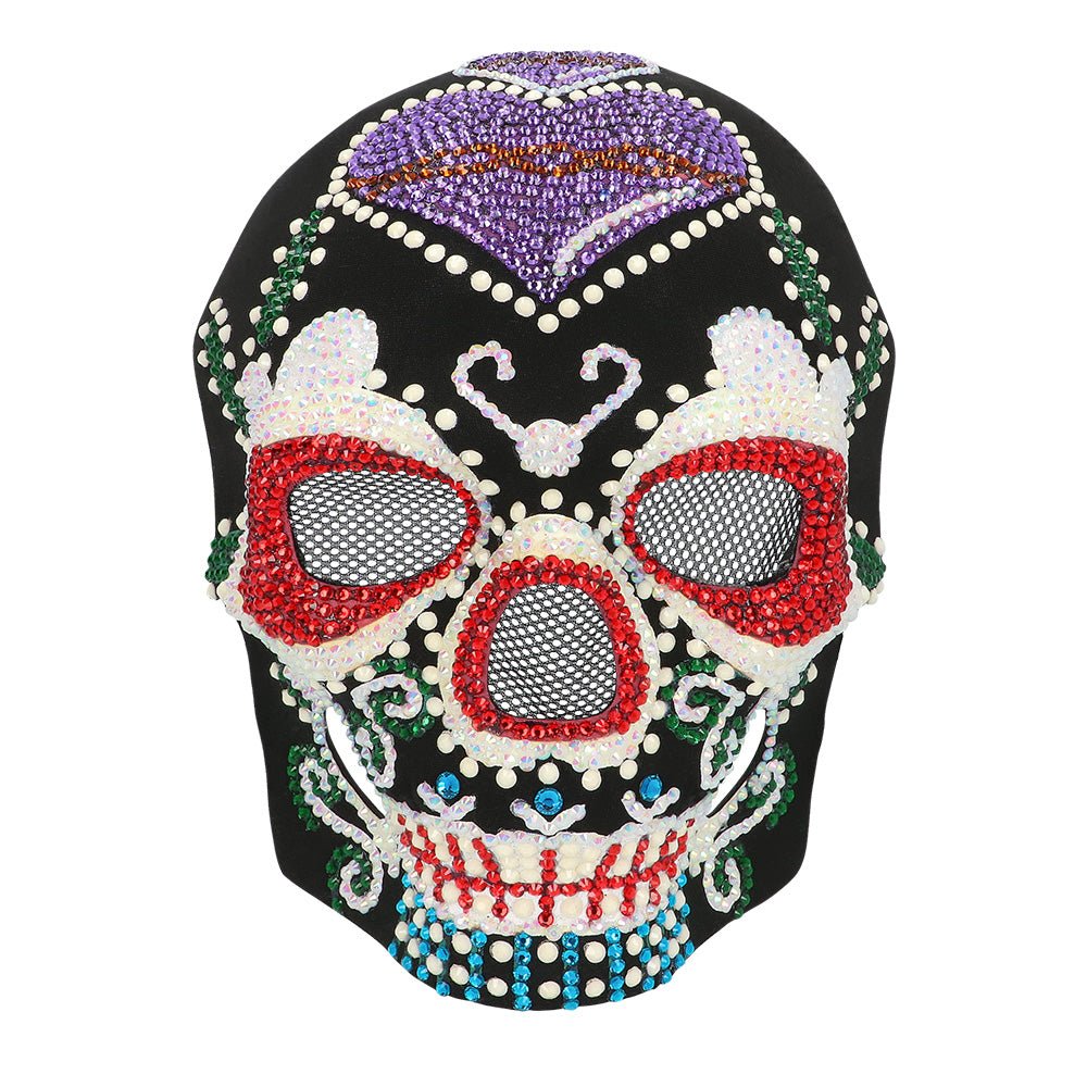 Tarkat koristeet, kiiltävät kivet ja eloisat värit tekevät tästä ylellisestä naamiosta todellisen katseenvangitsijan. Kallomuotoilu yhdistettynä kauniisiin väreihin tekee tästä naamiosta täydellisen Kuolleiden päivän teemaan. Tyylikäs lisä Dia de los Muertos -asuun halloweeniin, teemabileisiin tai karkki tai kepponen -tapahtumaan.