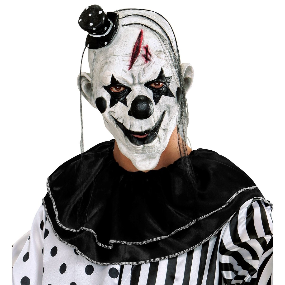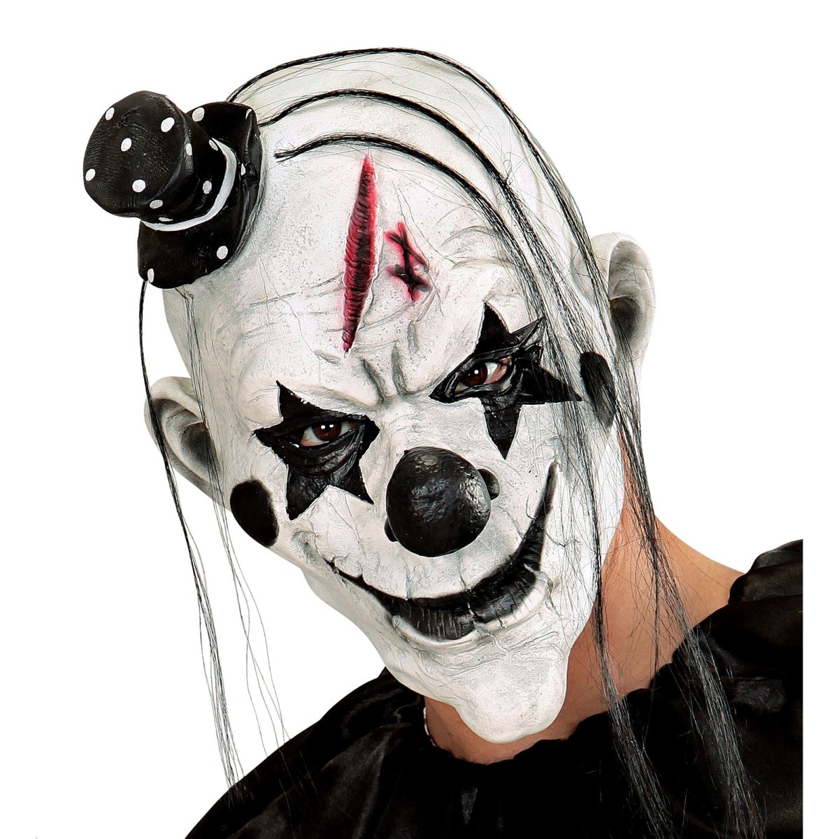 Pakkauksen sisältö: naamio tappajaklovni hiuksilla ja minihattu