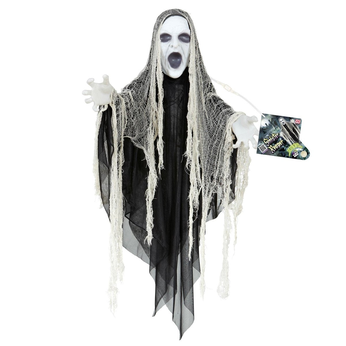 Tee halloween-juhlistasi pelottavat tällä 1,53-metrisellä haamu/viikatemies-nukella. Tässä koristeessa on valot ja ääni, mikä tekee siitä erityisen pelottavan ja täydellisen lisän juhlapaikalle, pihatielle tai kodin pimeään nurkkaan.