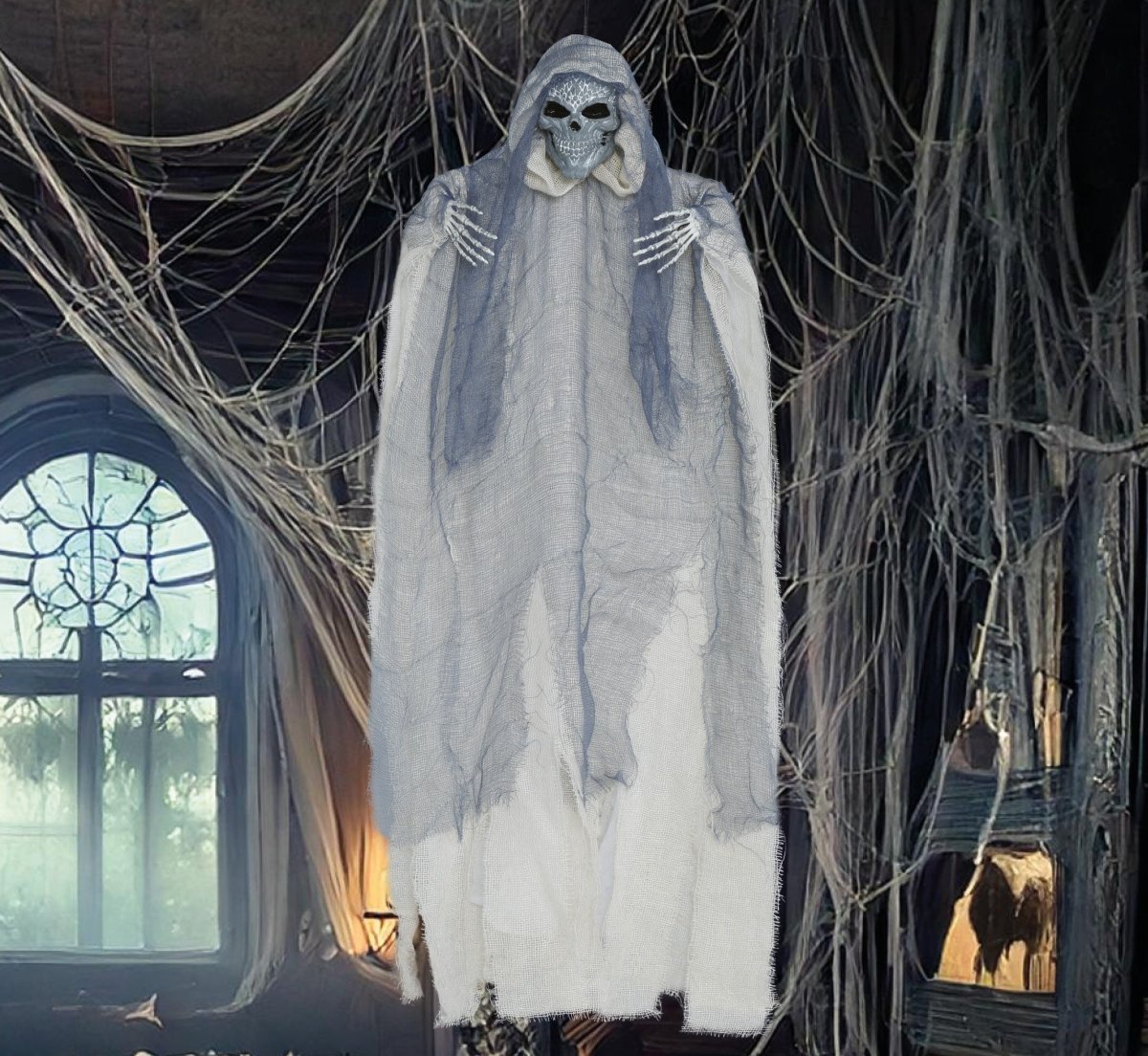 Halloween nukke harmaa luuranko viittoja